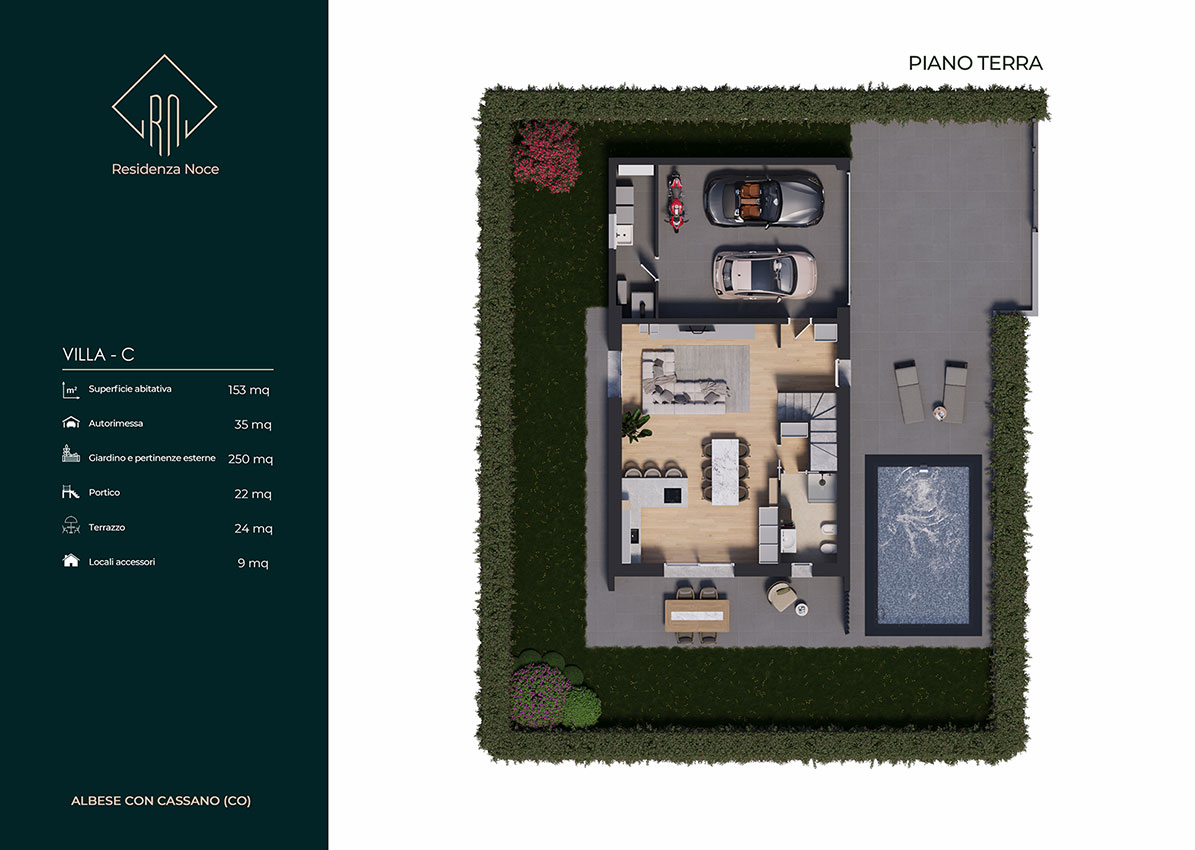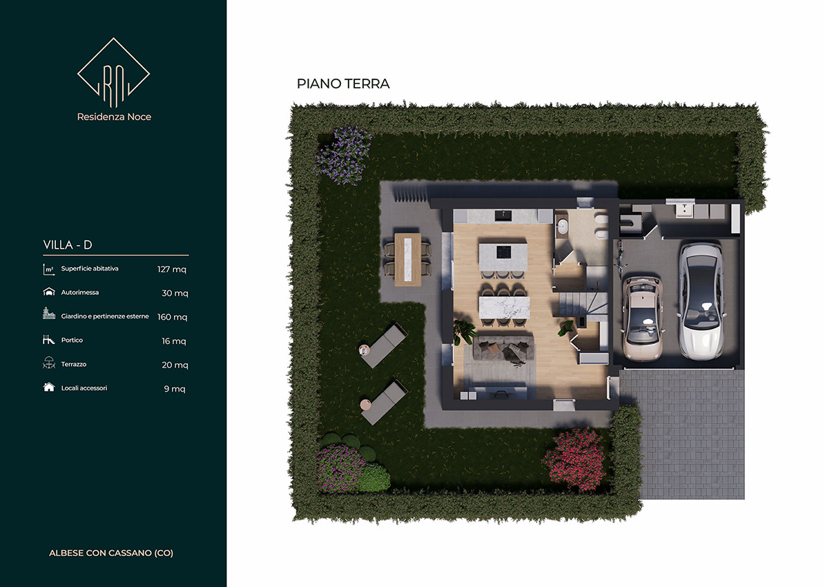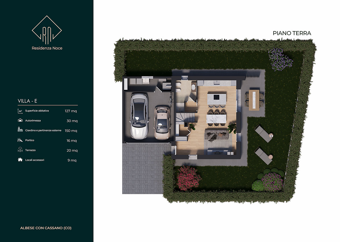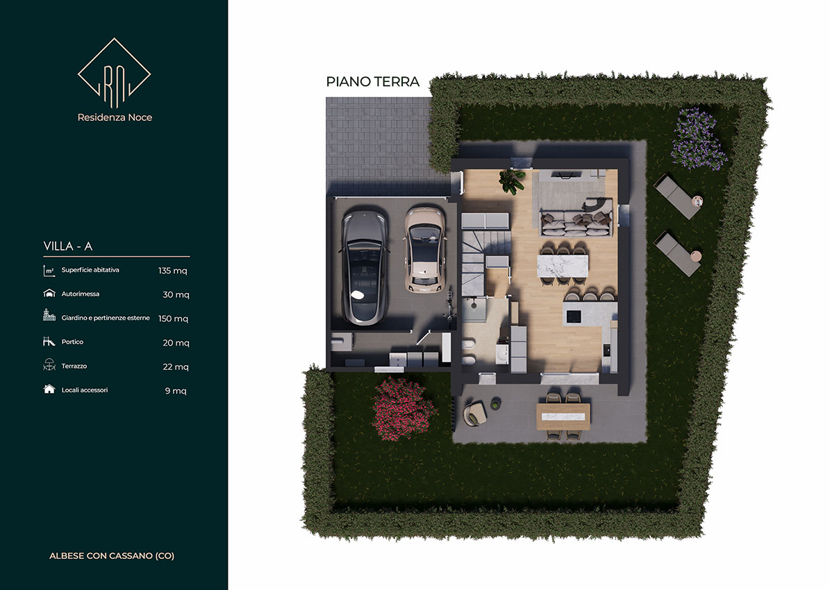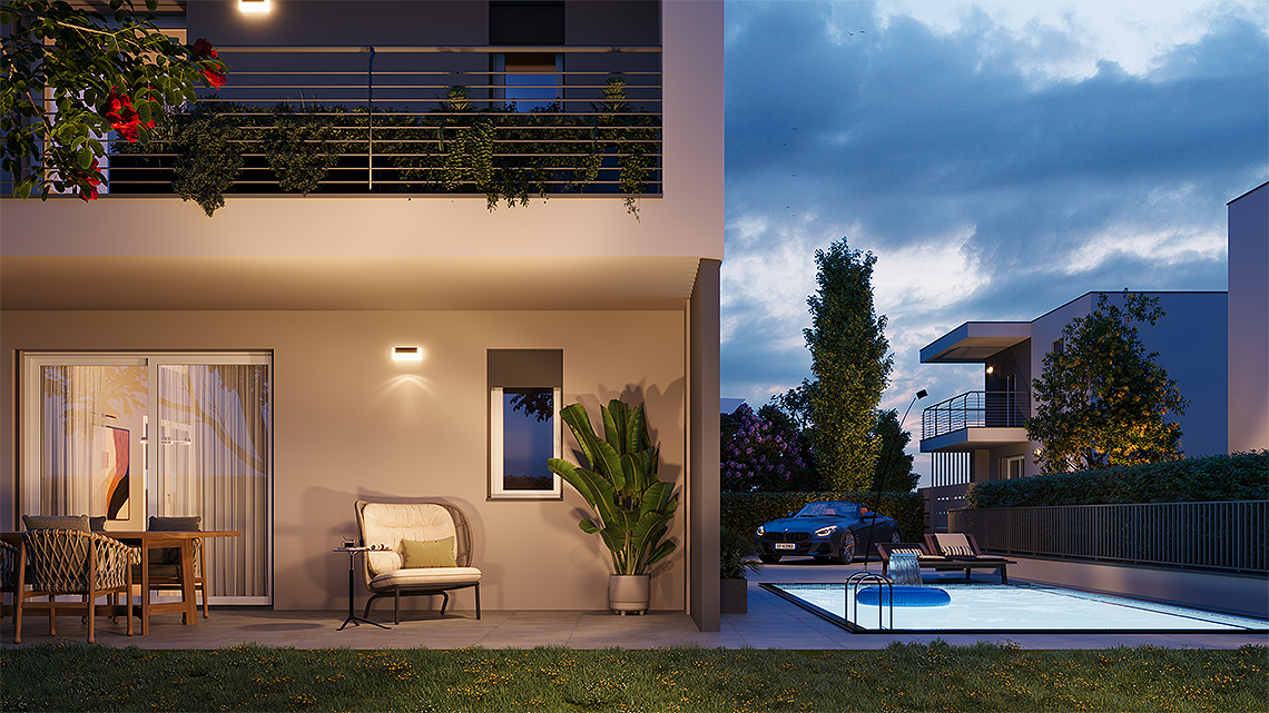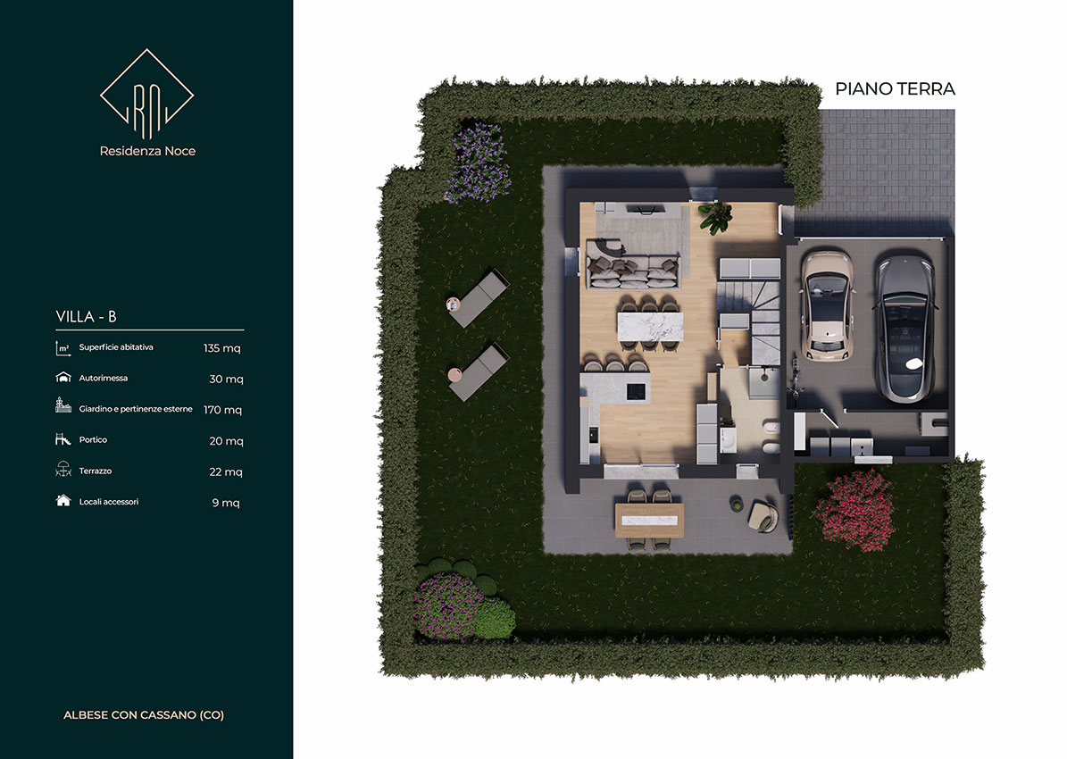 Tutte le unità sono dotate inoltre di locale tecnico e lavanderia, autorimessa doppia in larghezza e area esterna pavimentata esclusiva per manovra o ricovero auto. L’ orientamento, gli accessi e l’ esposizione fanno sì che tutte le unità godano di assoluta privacy e indipendenza. Le metrature, i locali, gli spazi esterni vivibili e gli accessori rendono ogni unità confortevole e adattabile ad ogni tipo di famiglia. Ogni villa si sviluppa su due piani abitativi ed è composta da un ingresso, un’ ampia zona giorno living, disimpegno, w.c., portico e giardino al piano terra, da tre camere da letto ampie, disimpegno, w.c. e terrazzo al piano primo. L' inizio lavori e' previsto entro la fine del 2023 con consegna estate/autunno 2025.